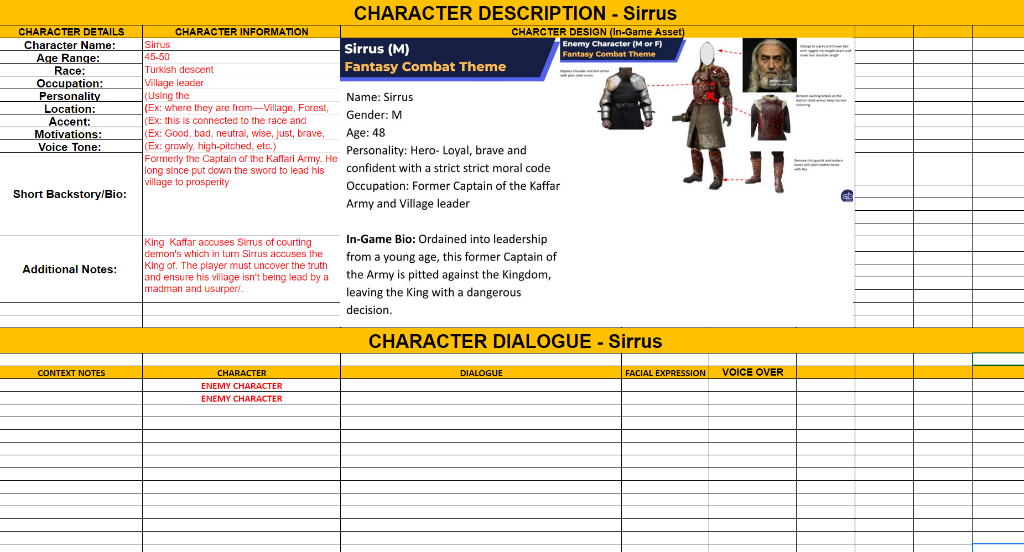 Create clear and digestible character, location, and script materials for art and design teams and team collaboration.