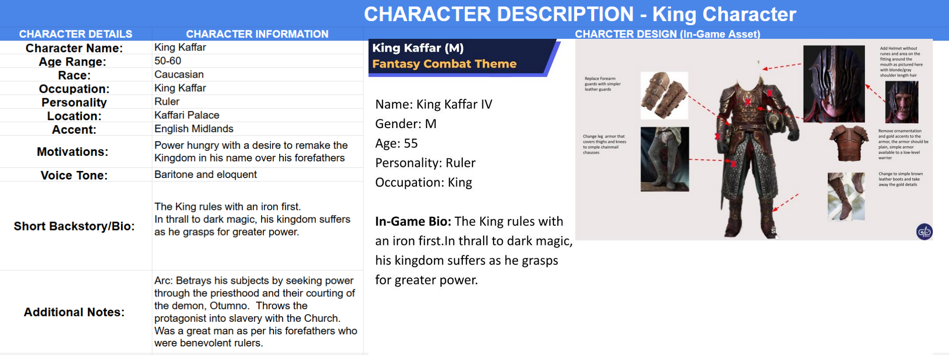 Researched, designed, and fleshed out character motivations and personality to reflect narrative themes, combat functions, and game mechanics.