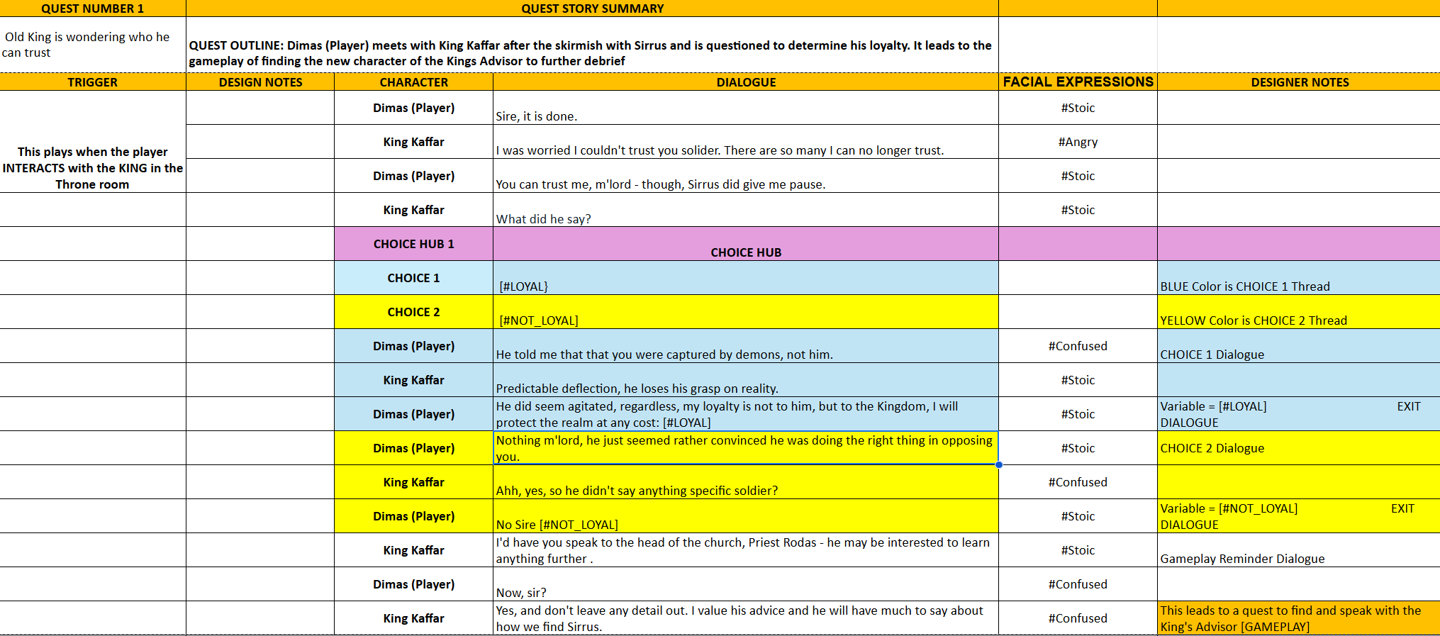 Create branching and linear dialogue that is congruent with the characters and seamlessly leads to gameplay.
